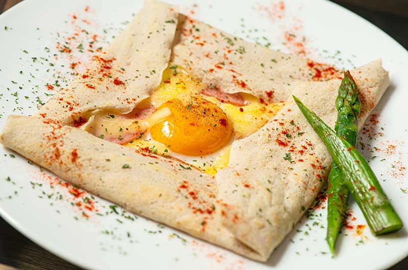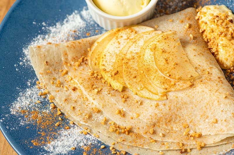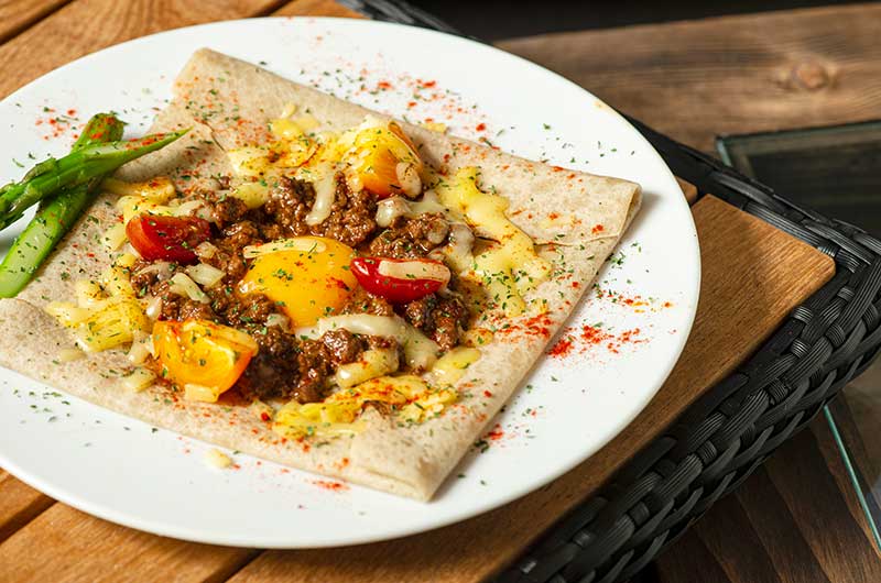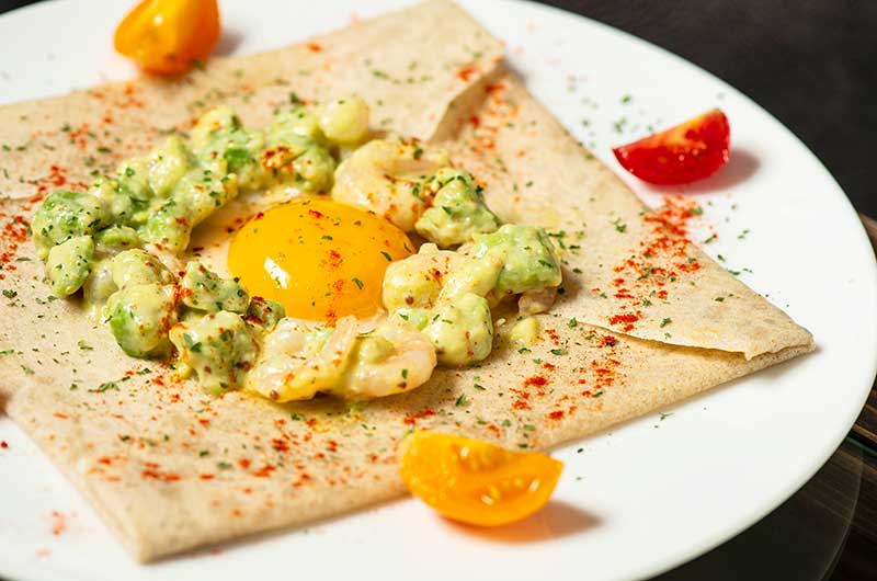そば粉や小麦粉・米粉をブレンドした生地を使い、ていねいに焼き上げたクレープやガレットをご賞味ください。モチモチの食感で、どんな具材とも相性のよいこだわりの生地。テイクアウトにも対応しております。